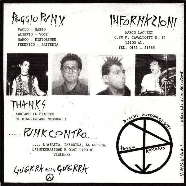 Peggio Punx - Disastro Sonoro EP - 45 giri prima stampa Peggio Records – PR 01